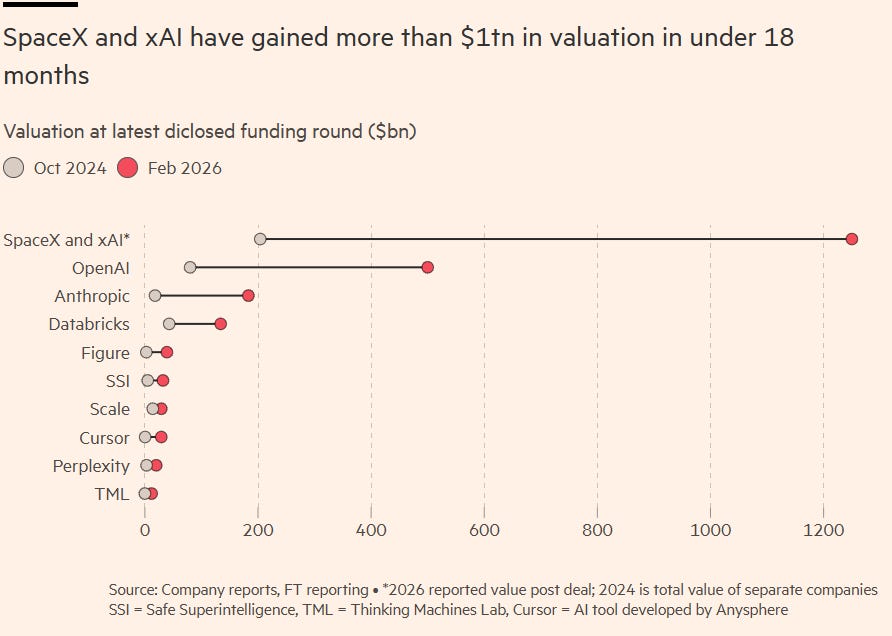 ○ Elon Musk’s bailout of xAI with SpaceX is the subject of this long read.