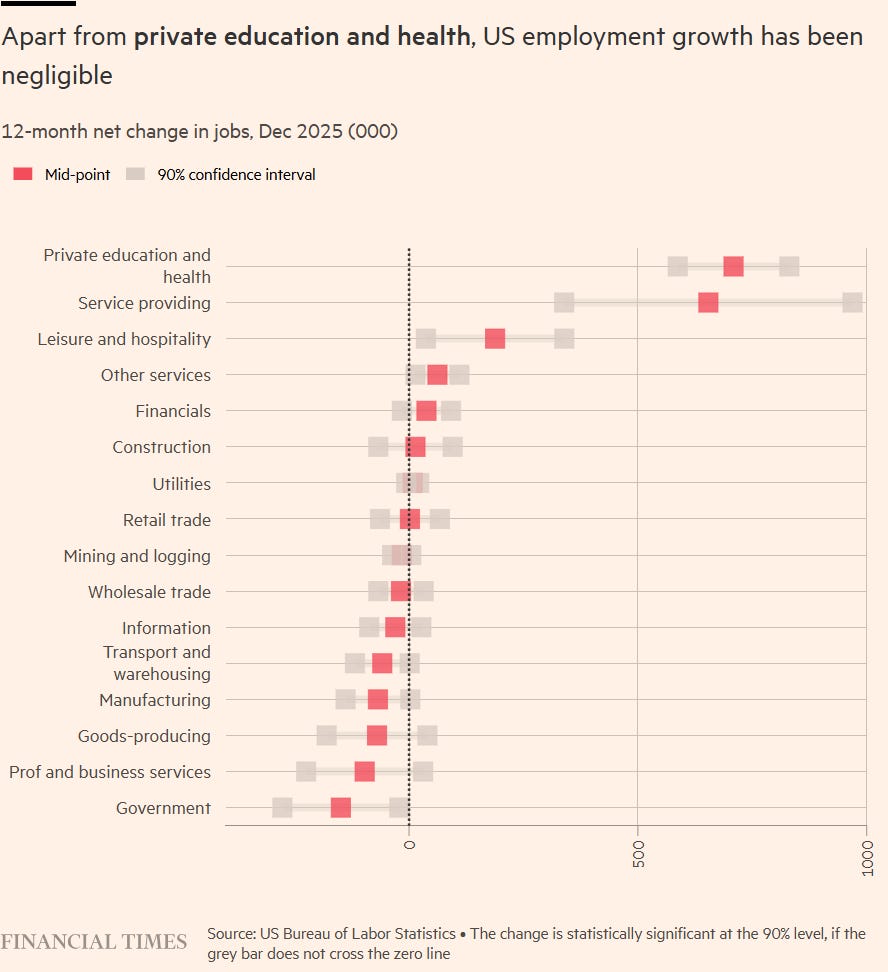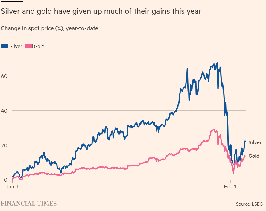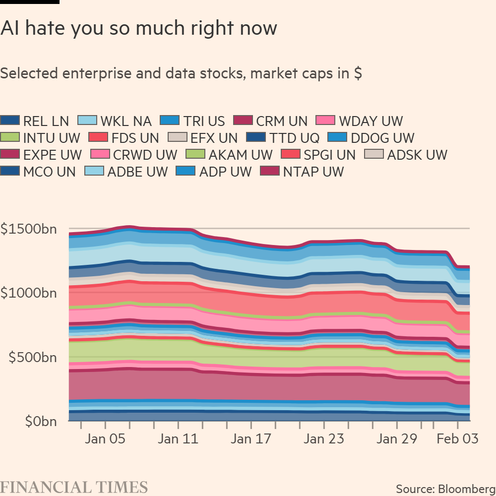 OK, that’s a simplification. There are plenty of reasons for being on edge right now, especially about the prices of things. Heaps of speculative money have been moved around on talk of reflation and debasement. The AI trade is at risk of Milhousing, as is private credit’s mark-to-mystery trade. Software and enterprise media stocks — the focus of selling early this week — were already comfortably the year’s worst performers and, as crypto is demonstrating, a crash doesn’t need a catalyst.