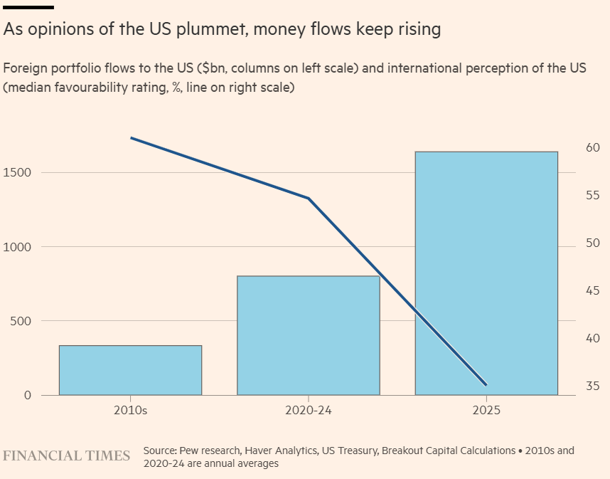 ○ Rockefeller International chair Ruchir Sharma considers why, when it comes to the US, hardly anyone is putting their money where their mouth is.