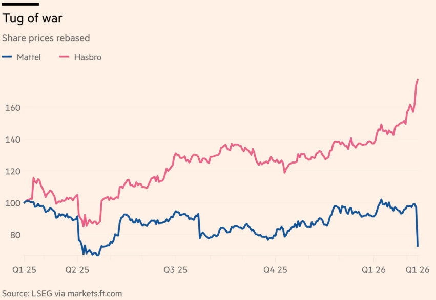 ○ Hasbro’s done well with trading cards while Mattel struggles with dolls, explains this Lex note.