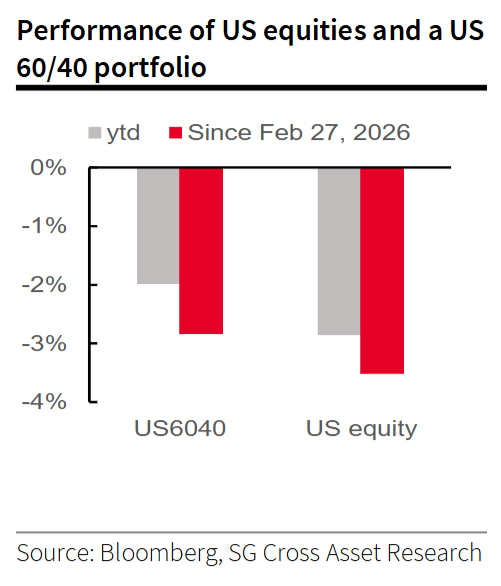 What’s unfortunate is that things have a habit of happening all at once, and “could be worse” won’t pay for many carefree retirements. Gold, for example, would normally be the safe option when bombs are falling. But dollar avoidance and the debasement trade earlier in the year turned gold into a meme. Charts via SocGen: