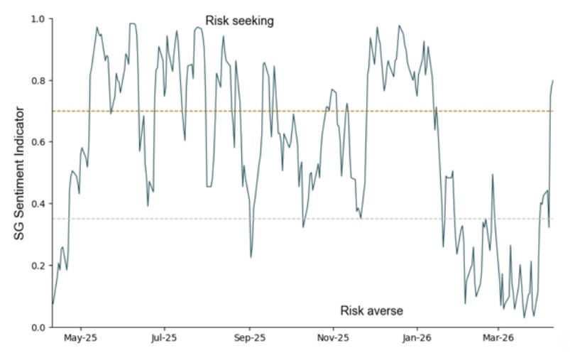 It sounds too much in combination, but, for the consensus, disregard is what’s happening. Stock benchmarks year-to-date are little changed or better. Bonds are doing nothing notable. The Vix volatility index is back to its February level below 20, while multi-asset measures like SocGen’s Sentiment Indicator have swung into the fill-your-boots zone: